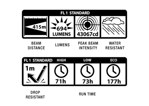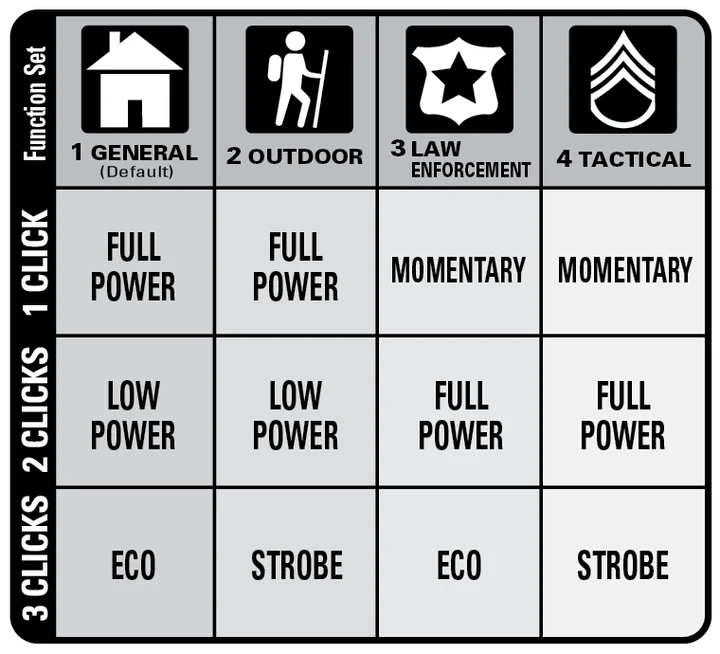 Whether you’re a professional using a flashlight for work or security, an outdoor enthusiast who takes it camping, or an occasional user wanting it for emergencies at home or on the road, our New ML300L D-cell LED is The Light For All Your Needs. With Eco mode, up to 177 Hours With the familiar “Quick-Click” system, users can, within the “General” function set, choose: – Full Power (maximum Lumens): Low Power (up to 163 Lumens); or Eco Mode – a super power saving mode that yields up to 76 Lumens with greatly extended run-time. As seen in the chart, there are three additional function sets – Outdoor, Law Enforcement, and Military – each offering a different set of functions invoked in a different sequence for the quickest access to the par particular user’s preferred parts. The IMPROVED,faster-handling focus system now adjusts from spot to flood with less than a 1/4 turn of the head. Packaging is chipboard box.