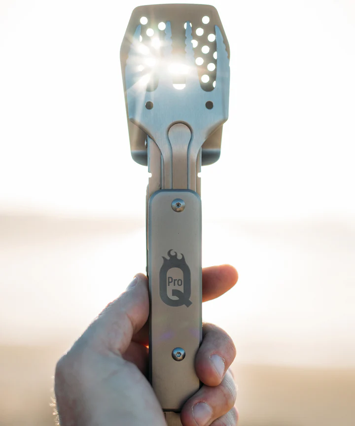The ProQ BBQ Multi-Tool is ideal for travelling light. This ingenious multi-functional BBQ tool set transforms, with a click and a twist, between a handy pair of BBQ tongs, grill fork, spatula and a bottle opener. High quality & lightweight, this tool will easily slip into a pocket, backpack or the cutlery storage in your campervan. The ideal tool for any BBQ fan when on the move, and a great gift too – the perfect BBQ gadget!